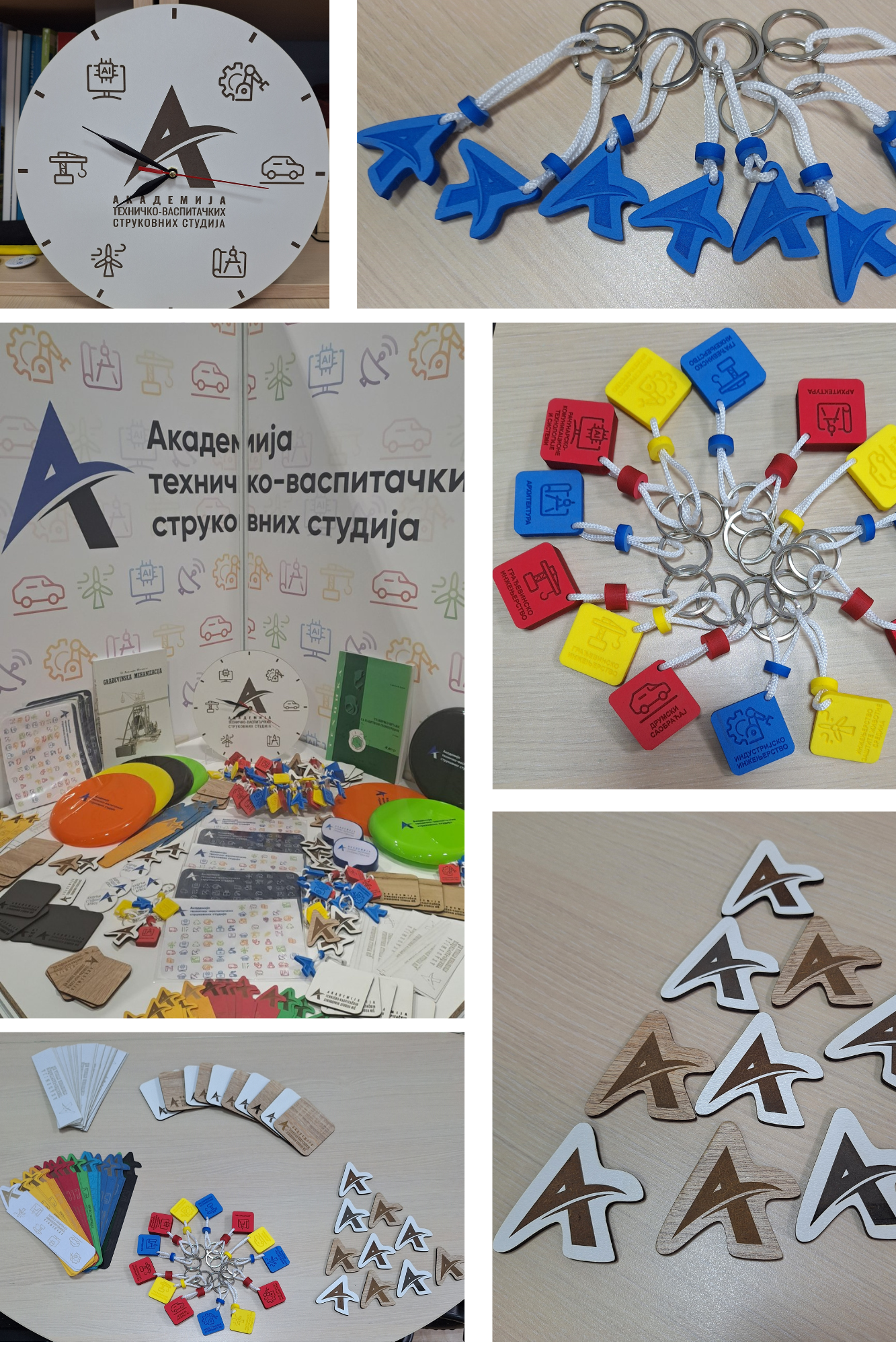Promo materijal obuhvata pažljivo dizajnirane magnete, bukmarkere, priveske za ključeve, kao i podmetače za čaše i šolje, prilagođene svim studijskim programima. Svi proizvodi izrađeni su u Laboratoriji za mašine i materijale, uz primenu savremenih tehnologija i materijala, čime je dodatno istaknuta veza između obrazovanja, praktičnog rada i preduzetništva.